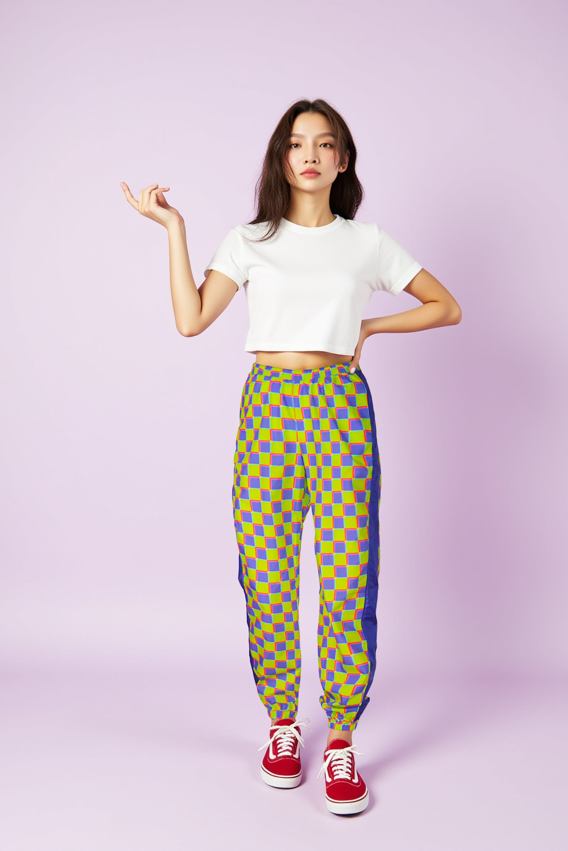 Built for blazing trails or skating sidewalks, these pants are prehistoric-level cool. Made from 100% organic cotton poplin with a one-of-a-kind custom print, they’re soft, breathable, and cool to the touch — perfect for hot days. The ultra-loose fit lets your legs live their best life, whether you're jumping curbs or lounging in the shade. Two deep side pockets comfortably hold your phone, snacks, or dino figurines. Bonus: slick nylon side stripes add sporty flair and a subtle swish when you move.
